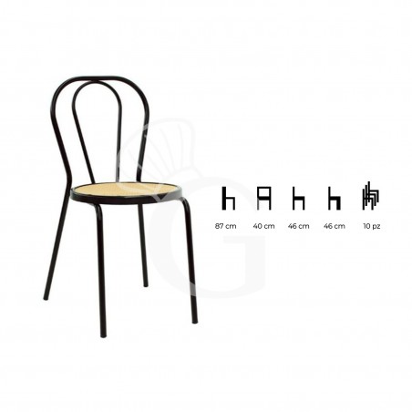 La silla Ginevra tiene una estructura con 4 patas de acero pintado en negro y un asiento de polipropileno.