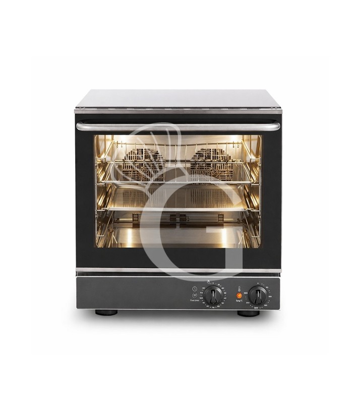 Horno eléctrico de convección para cruasanes, puerta abatible, controles mecánicos, diseñado para la inserción de 4 bandejas de 433 x 333 mm y potencia de 2,8 kw.