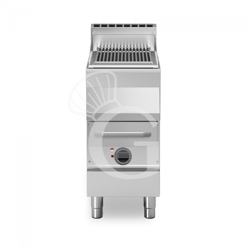 - Equipamiento de serie Cajón de recogida de grasa extraíble; 2 parrillas reversibles de hierro fundido de 160 mm de ancho para carne/pescado