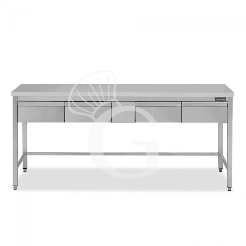 Mesa de trabajo de acero inoxidable con 4 cajones con dimensiones L 1800 mm x P 800 mm x A 850 mm