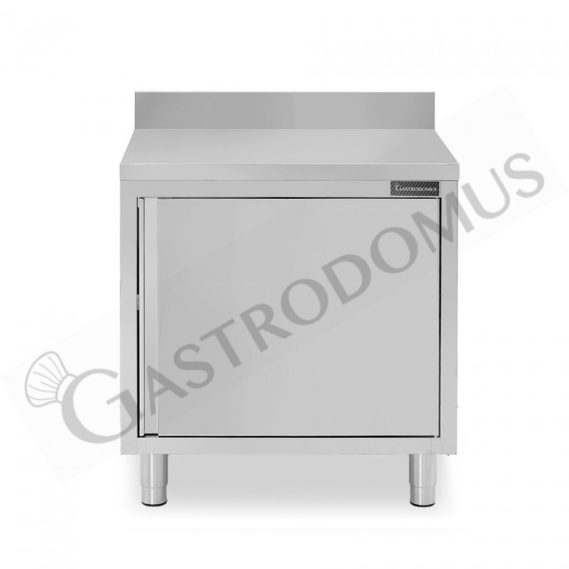 Mesa mural de acero inoxidable con 1 puerta batiente y peto trasero L 800 mm x P 800 mm x A 950 mm
