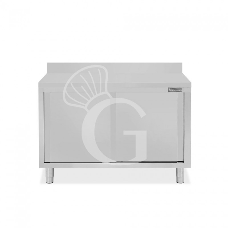 Mesa mural de acero inoxidable con 2 puertas correderas y peto trasero L 1200 mm x P 800 mm x A 950 mm