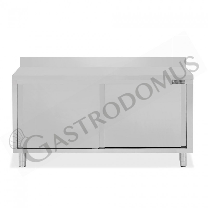 Mesa mural de acero inoxidable con 2 puertas correderas y peto trasero L 1700 mm x P 800 mm x A 950 mm