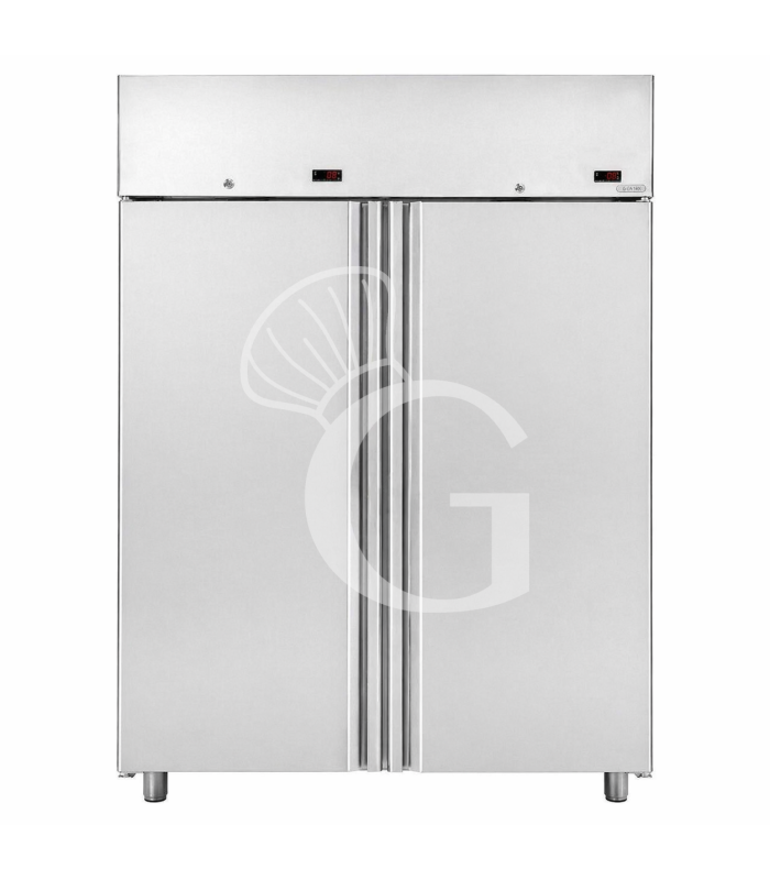 Armario refrigerado de acero inoxidable ventilado con 2 puertas, capacidad de 1400 litros y temperatura de 0°C/+10°C y 0°C/+10°C, preparado para motor remoto.