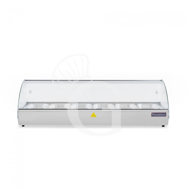 Vitrina caliente de acero inoxidable y vidrio 6 cubetas GN1/3 A 40 mm L 1127 mm x P 420 mm x A 336 mm