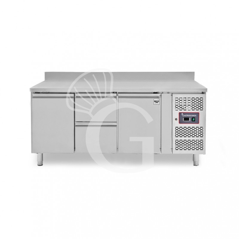 Mesa Refrigerada para gastronomía 2 cajones 2 puertas 700 mm -2°C/+8°C peto trasero