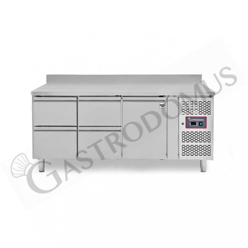 Mesa Refrigerada para gastronomía 4 cajones 1 puerta 700 mm -2°C/+8°C peto trasero