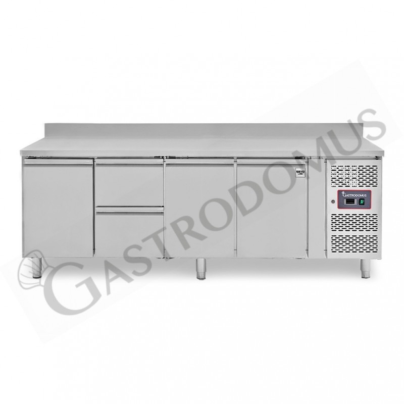 Mesa Refrigerada para gastronomía 2 cajones 3 puertas 700 mm -2°C/+8°C peto trasero