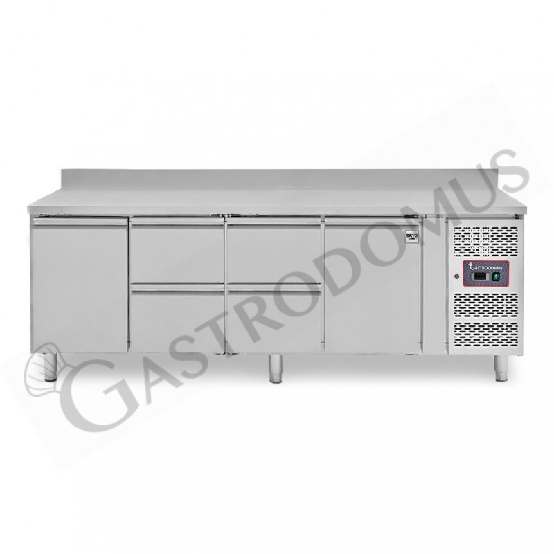 Mesa Refrigerada para gastronomía 4 cajones 2 puertas 700 mm -2°C/+8°C peto trasero