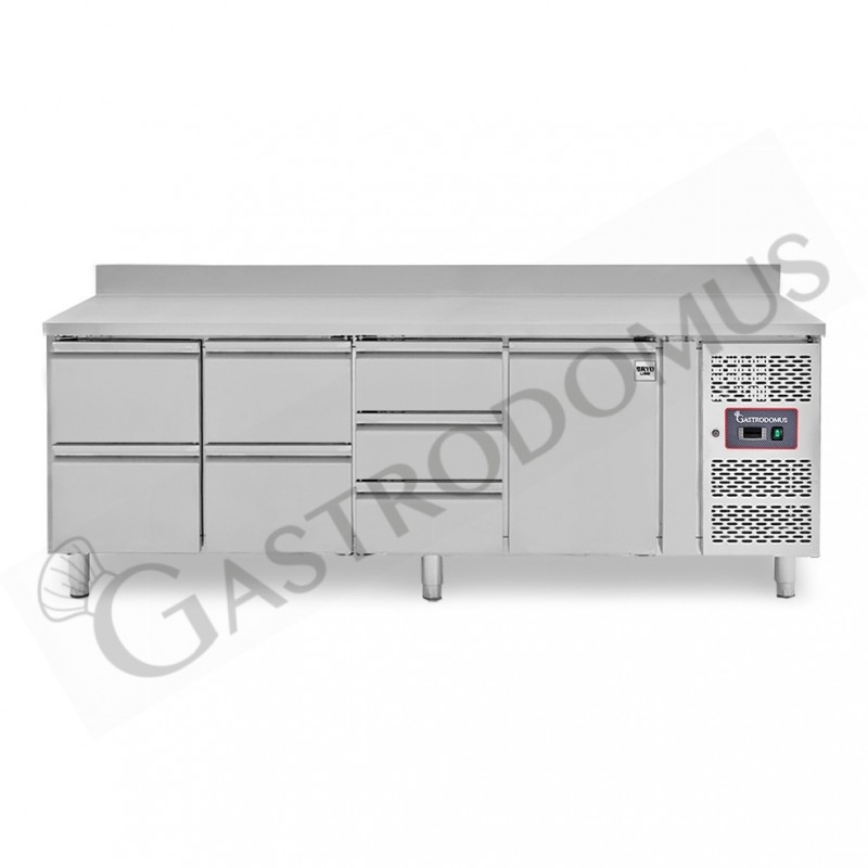 Mesa refrigerada 7 cajones 1 puerta 700 mm -2°C/+8°C, peto trasero