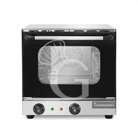 Horno eléctrico de convección con puerta abatible, controles mecánicos, diseñado para la inserción de 3 rejillas, potencia 2,6 kw.