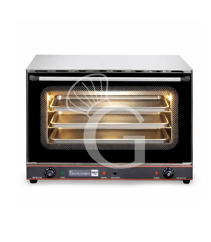 Horno eléctrico de convección, puerta abatible, controles mecánicos, para la inserción de 4 bandejas de 600x400 mm, potencia 6,4 kw.