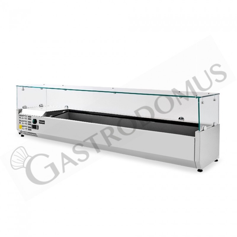 Vitrina Refrigerada horizontal con motor a la izquierda, longitud 1500 mm, Capacidad 5 Cubetas GN1/3 + 1 Cubeta GN1/2