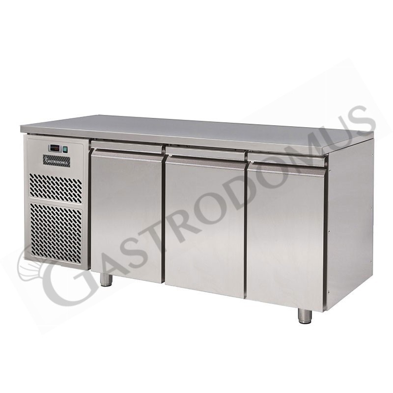 Mesa refrigerada con 3 puertas, prof. 600 mm y temperatura de 0°C/+10°C con motor a la izquierda.