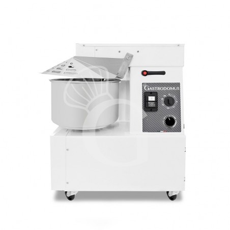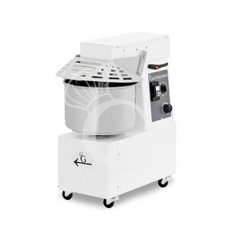 Amasadora de espiral monofásica con cuba extraíble, capacidad de 16 litros y velocidad variable.