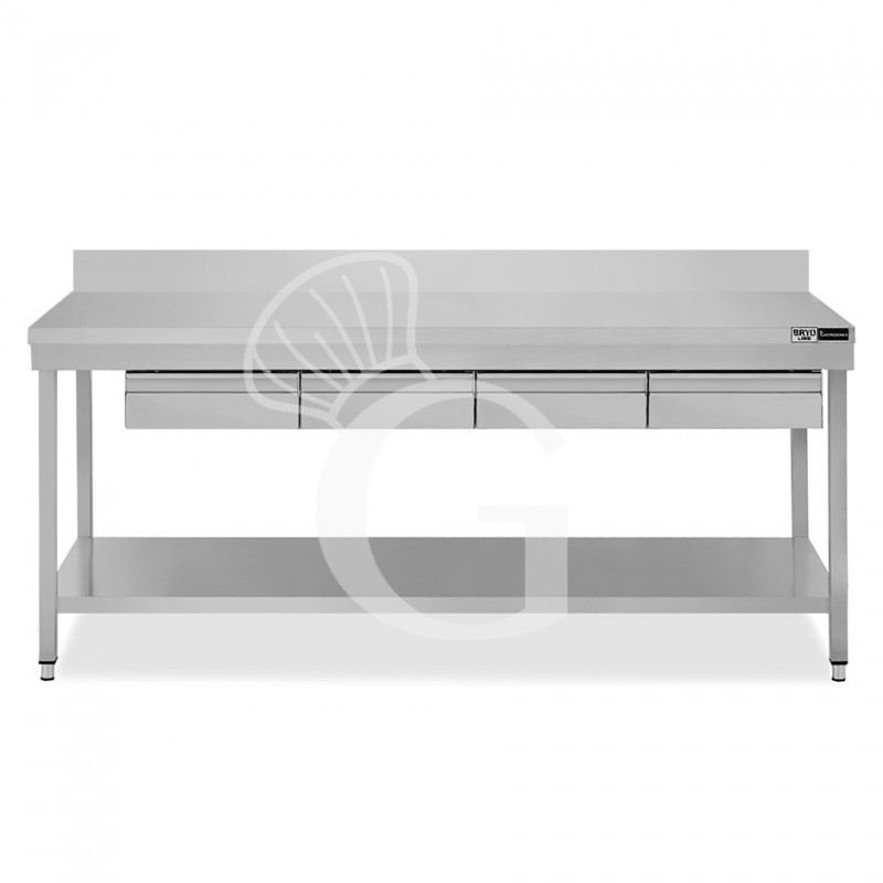 copy of Tavolo semplice in acciaio inox con piano, alzatina, 4 cassetti e L 1800 mm x P 800 mm x H 950 mm