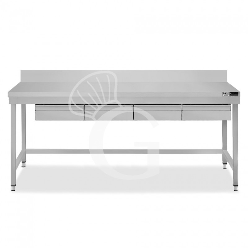 Mesa de trabajo de acero inoxidable con 4 cajones y peto trasero L 1800 mm x P 700 mm x A 965 mm.