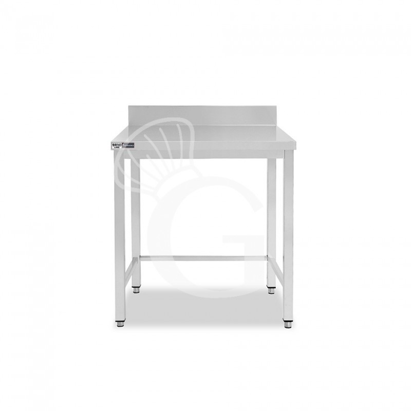 Mesa sencilla de acero inoxidable con peto y dimensiones de 700 mm de largo x 800 mm de profundidad x 965 mm de altura.