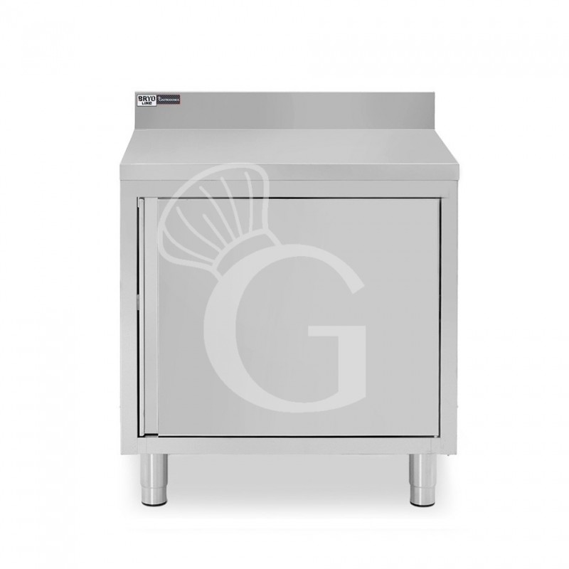 Mesa mural de acero inoxidable 1 puerta batiente y peto L 600 mm x P 800 mm x A 950 mm