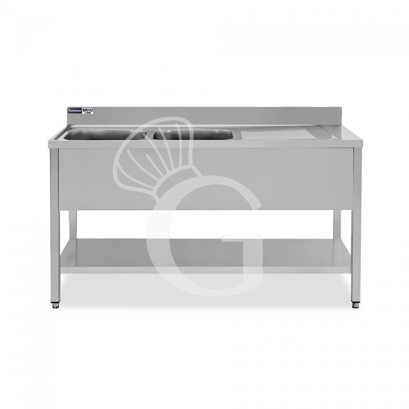Fregadero inox 1 estante, peto trasero, 2 cubas, escurridor a la derecha, L1400mmxP700mmxA965mm-agujero para el grifo Ø 32 mm