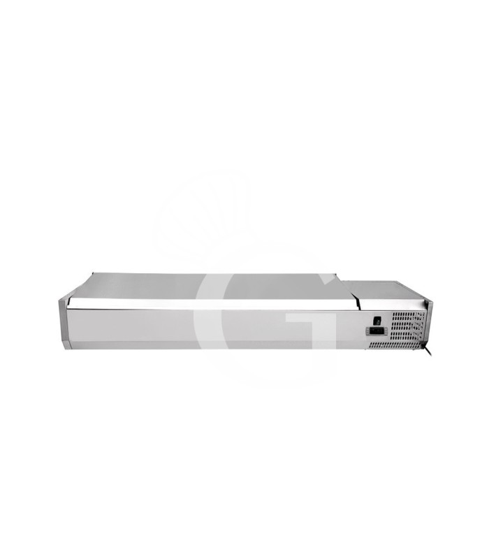Vitrina refrigerada para pizzería con tapa en acero inox L 1400 mm para 6 cubetas GN1/4