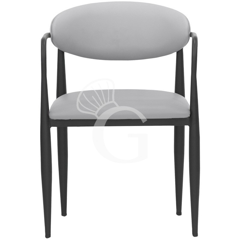 Silla de metal pintado, asiento y respaldo acolchados, tapizado en polipiel.