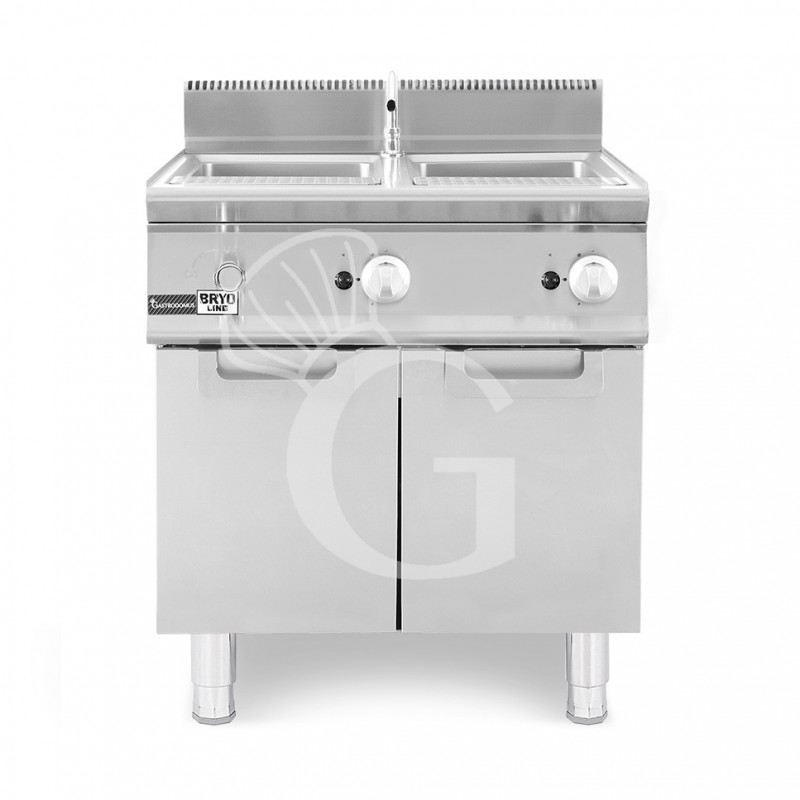 Cocedor de pasta profesional de gas sobre mueble cerrado 2 cubas , 40 LT+ 40 LT, Prof. 900