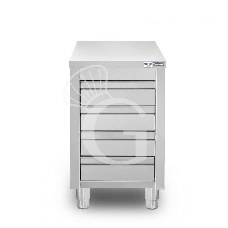 La cajonera cuenta con una estructura robusta en acero inoxidable con acabado Scotch Brite.