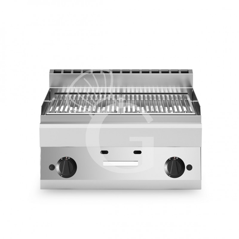 Parrilla de gas de sobremesa con 2 zonas de cocción en acero y profundidad de 700 mm.