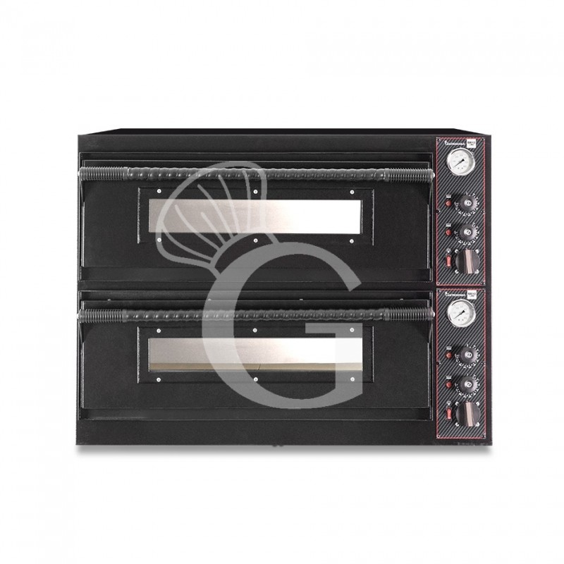 Horno eléctrico 4+4 pizzas de diámetro 350 mm 2 cámaras control mecánico 6 Kw con diseño negro