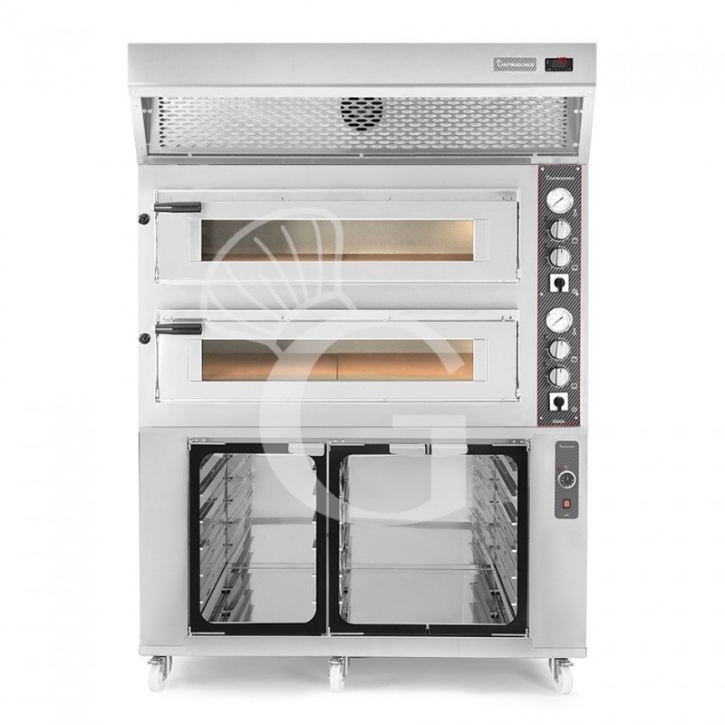 Horno eléctrico de 2 cámaras para 6+6 pizzas Ø 350 mm, control mecánico, con campana de condensación inox y cámara fermentación inox.