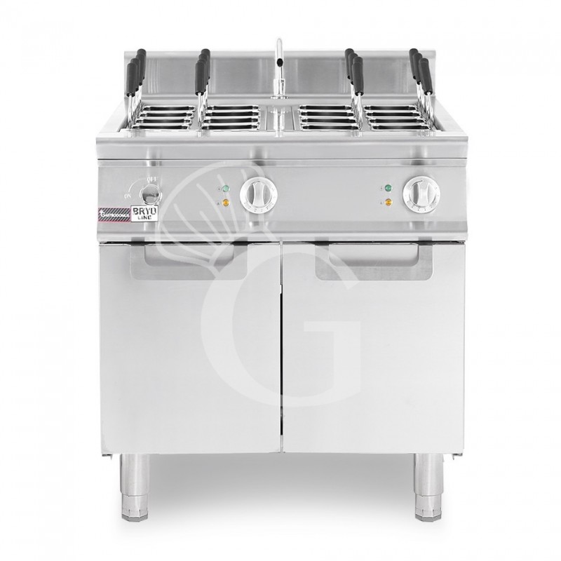 Cocedor de pasta profesional eléctrico sobre mueble cerrado, prof. 900 mm -2 cubas, 40L + 40L, 24 KW