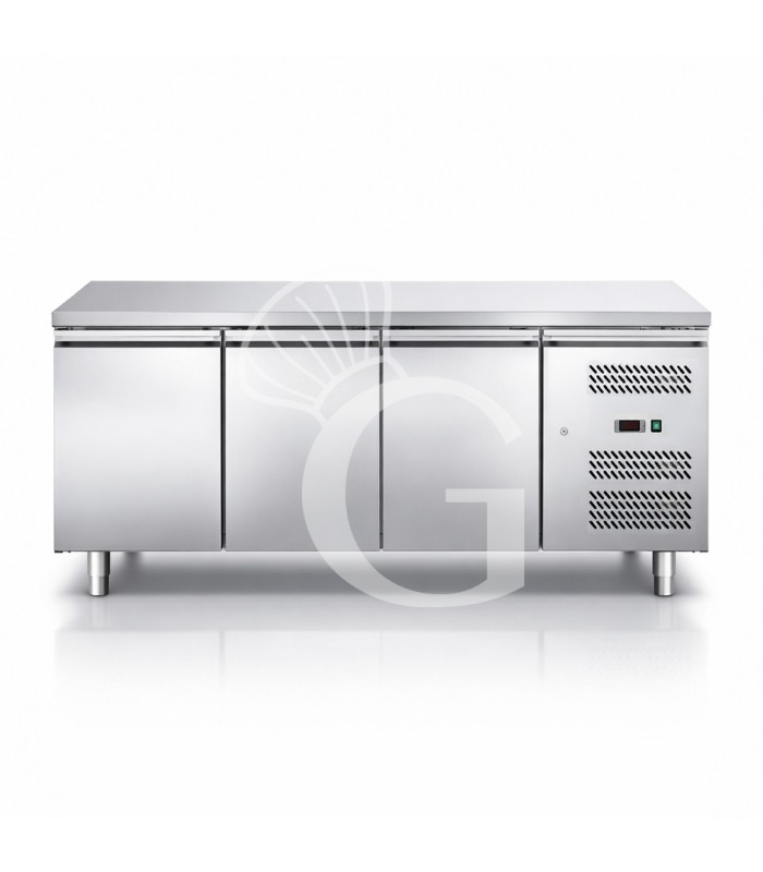 Mesa Refrigerada para Pastelería 3 puertas 600 x 400 mm, con superficie en inox, -2°C/+8°C, clase energética C.