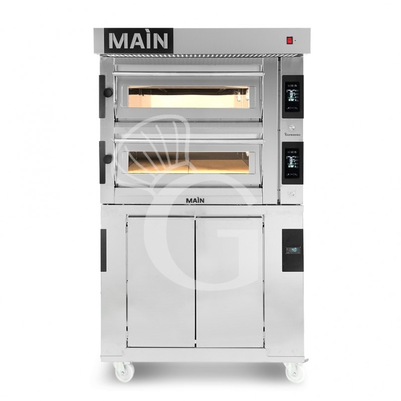 HORNO ELECTRICO CONTROL TOUCH PARA 4+4 PIZZAS DIAMETRO 350, 2 CAMARAS 14.4KW – CAMPANA INOX – CAMARA FERMENTADORA
