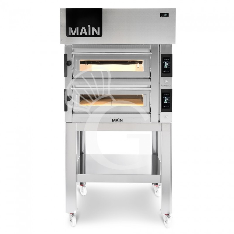 HORNO ELECTRICO CONTROL TOUCH PARA 4+4 PIZZAS DIAMETRO 350, 2 CAMARAS 14.4KW – CAMPANA CONDENSACION– SOPORTE (SIN RUEDAS)