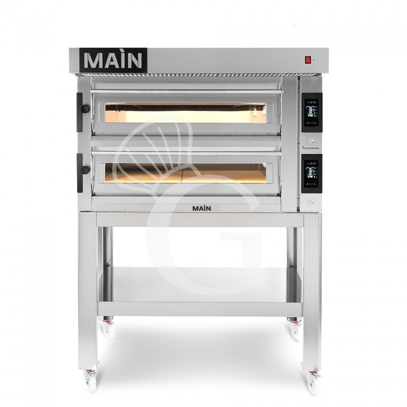 HORNO ELECTRICO CONTROL TOUCH PARA 6+6 PIZZAS DIAMETRO 350, 2 CAMARAS 24.4KW – CAMPANA INOX – SOPORTE (SIN RUEDAS)