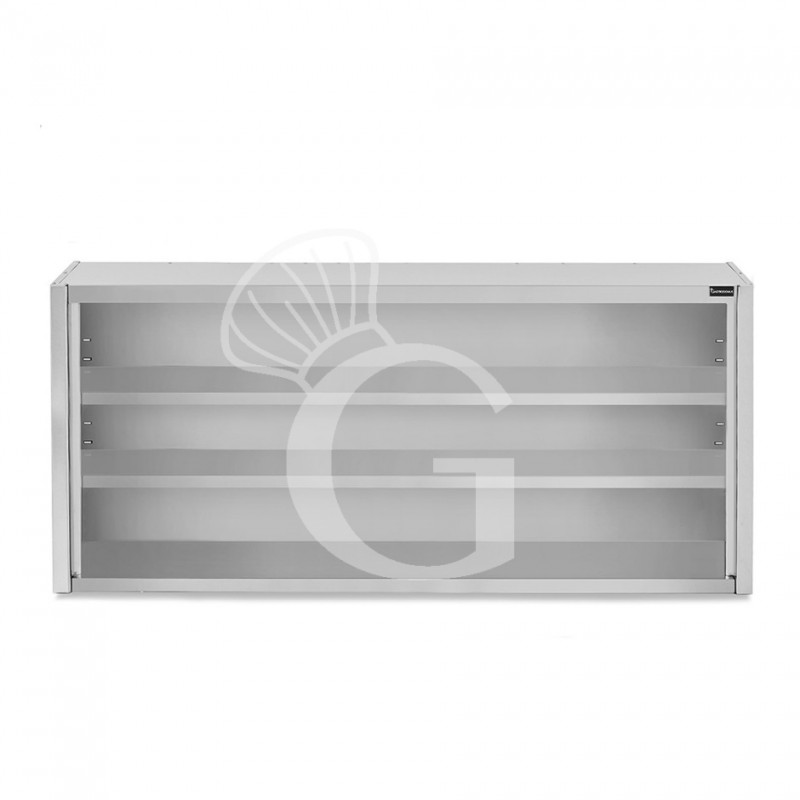Armario de pared en acero inoxidable abierto con 2 estantes, L 1700 mm x P 400 mm x H 1000 mm.