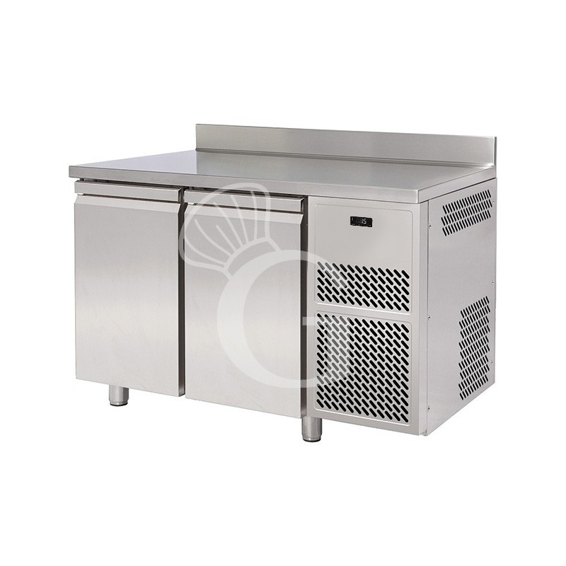 Mesa refrigerada con 2 puertas con peto trasero, profundidad 800 mm y temperatura 0°C/+10°C, preparada para motor remoto.