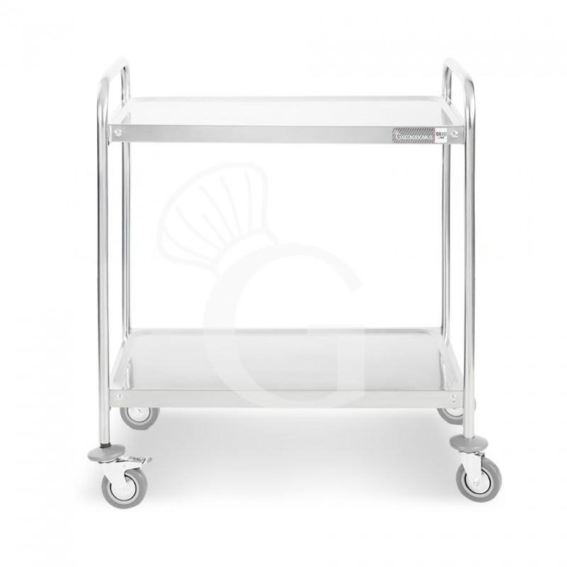 Carro de servicio en acero inoxidable, práctico y robusto, con 2 estantes fijos de bordes redondeados, fabricado en acero inoxidable (grosor de 0,6 mm), fácil de higienizar.