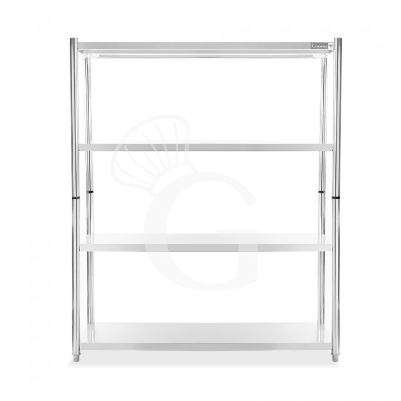 Fabricada en acero inoxidable AISI 304 con 4 estantes fijos, garantiza máxima durabilidad y resistencia en el tiempo. Perfecta para restaurantes, almacenes, hospitales y hoteles, este sistema modular de estanterías responde a las exigencias de los entornos más demandantes.