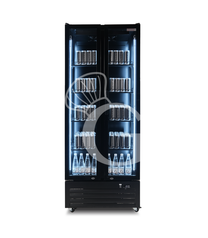 Expositor ventilado para bebidas 2 puertas batientes 590 LT 2°C / +10°C color negro