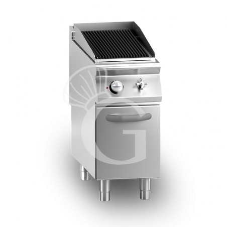 Parrilla de gas y piedra volcánica sobre mueble, 1 zona de cocción y 900 mm de profundidad