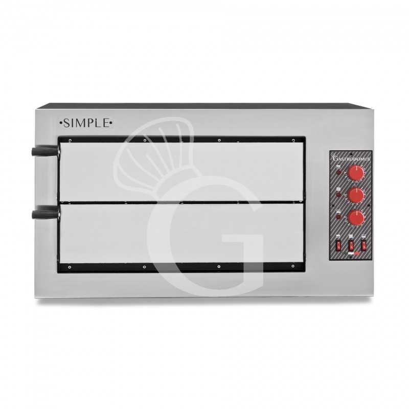 Horno pequeño eléctrico 2 Pizzas diámetro 450 MM 2 Cámaras Control mecánico Temperatura 455°C potencia 7,5 Kw