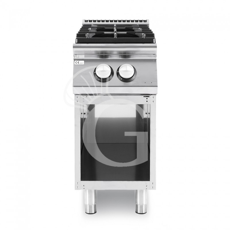 Cocina de gas profesional 2 fuegos con mueble abierto profundidad 900 mm