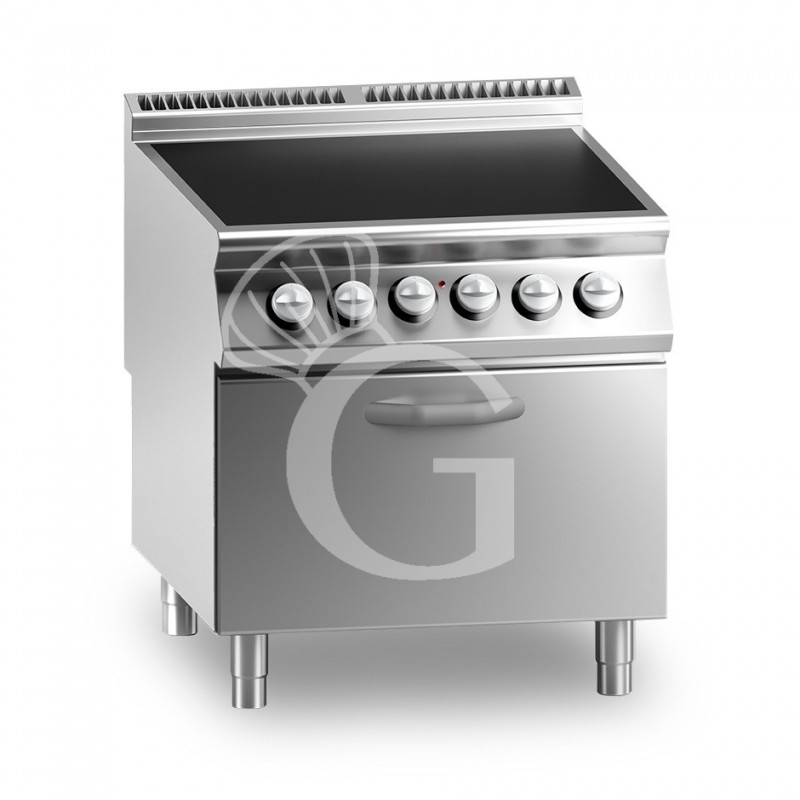 Cocina eléctrica con la superficie de cocción de vitrocerámica, horno eléctrico estático GN2/1, profundidad 900 mm.