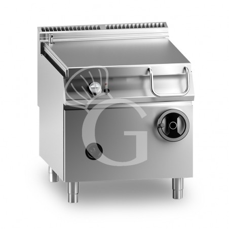 Sartén basculante eléctrica con apertura manual y cuba de 80 litros de capacidad.