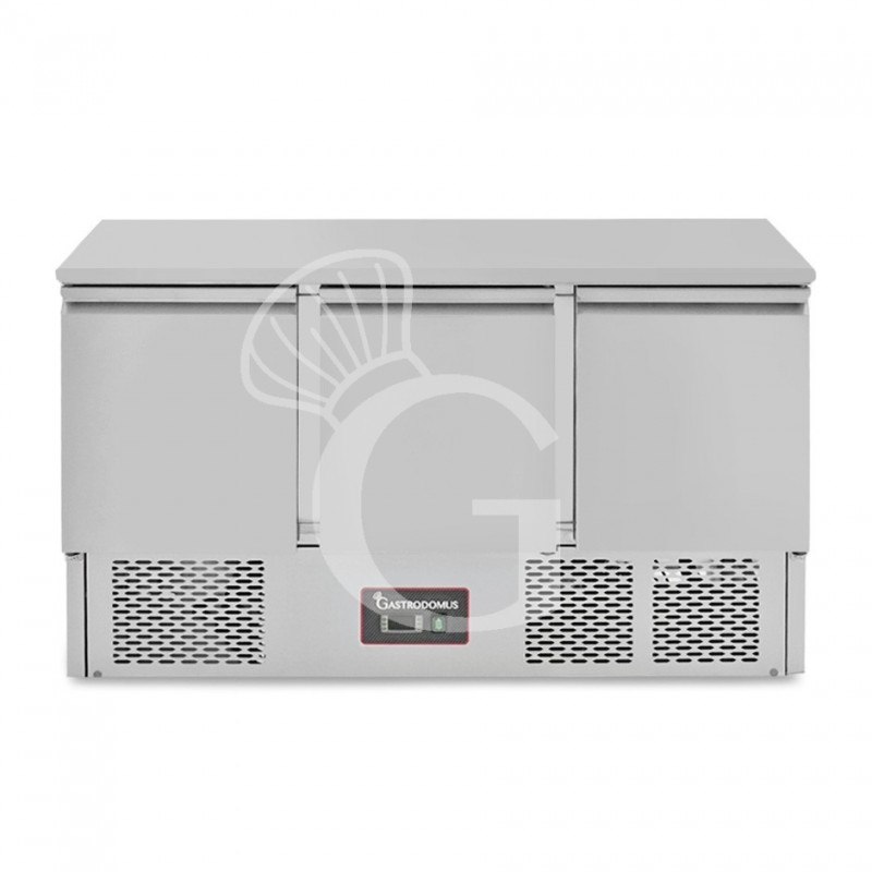 Mesa fría refrigerada de 3 puertas, temperatura +2 °C/+8 °C, encimera de acero inoxidable