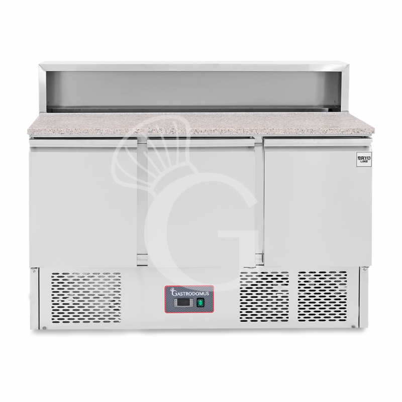 Mesa fria para ensaladas 3 puertas, temperatura +2°C/+8°C, encimera de granito