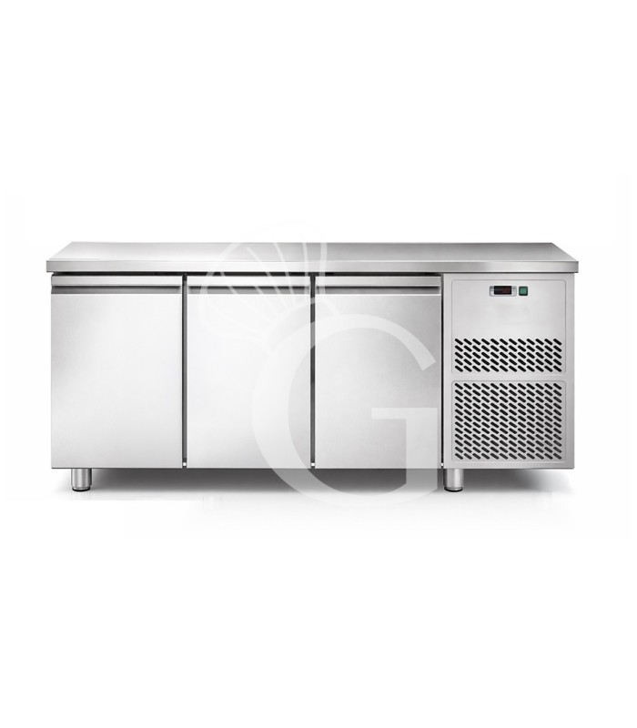Mesa refrigerada con 3 puertas, profundidad de 700 mm y temperatura de -18°C/-22°C.