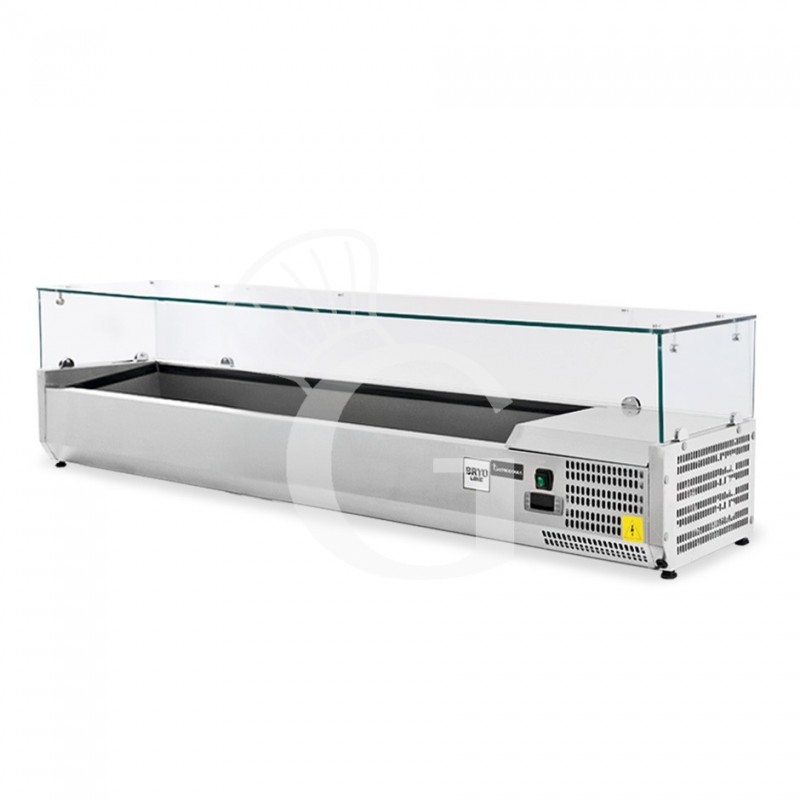 Vitrina refrigerada horizontal para pizzería, 1200 mm de largo, Capacidad 5 cubetas GN1/4.